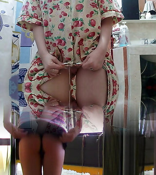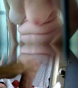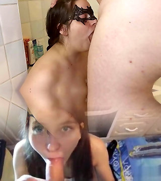 My roommate drains in the bathroom thinking she's alone and I creep in giving myself a handjob and she gives me a blowjob