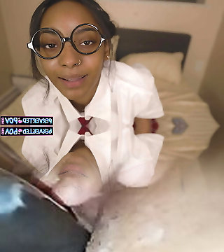 A Girl Who Loves To Read Actively Sucks an Ugly Guy's Raw Cock While Wearing Cute Glasses and Allows Him To Cum (part 2)