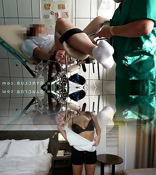 Pervert Poses As A Gynecologist Doctor To Ravage The Beautiful Wife Next To Her Dumb Husband In An Erotic Medical Consultation