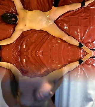 Chubby shaved nerd with nipple clamps and toys sploogs