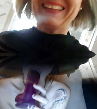 Nymph shows her pussy to the voyeur of the Internet technician and catches her fucking and dripping cum .