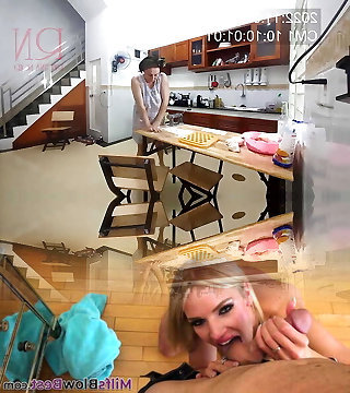 Ravioli Time! A bare housekeeper works in the hotel kitchen. Depraved housekeeper works in the kitchen sans panties.