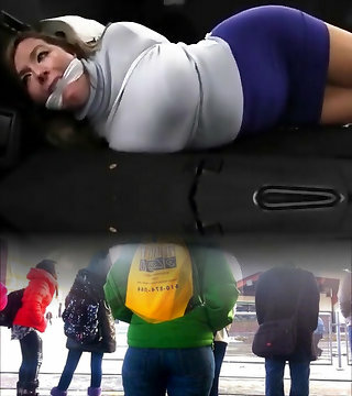 BBW slave chick gets her tits tied. Predicament Bondage bondage with an anal hook.