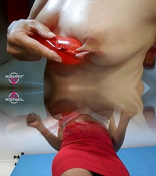 nippleringlover - wild milf pulling long balloon thru extreme stretched nipple piercings part2