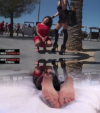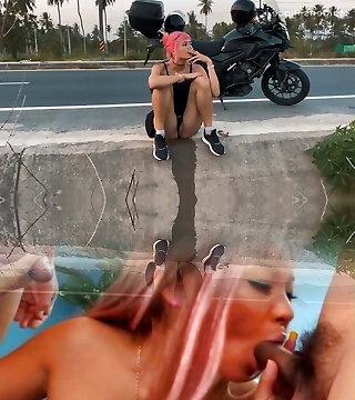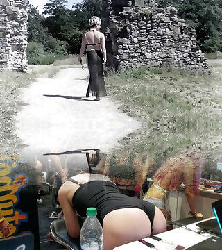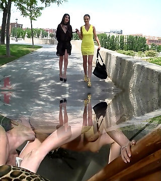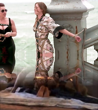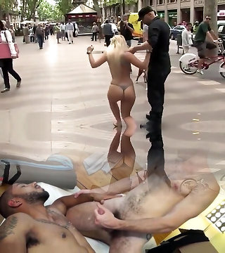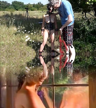 Un couple pervers a acheté une jeune brune esclave , en ténue luxurious et au corps de rêve, afin de la soumettre brutalement au bord de la route