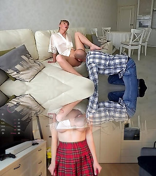 Hard Fucking in the Wet Pussy of 18 Year Older Titsy College girl Without Taking off Red Undies