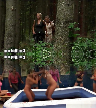Trussed Up Blonde Lesbian Schoolgirl In Madame's Dungeon