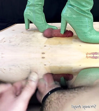 Heels Bootjob in Green Knee Boots (Two POVs) with TamyStarly - Ballbusting, Stomping, CBT, Trampling, Femdom, Shoejob