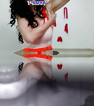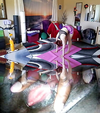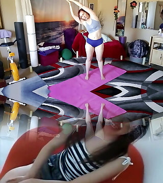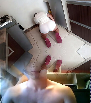 Depraved housewife Lukerya excites her fans during the online broadcast spreading her gams wide.