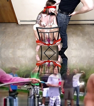 A shaved, bearded and hairy male is cruel to his gorgeous mature wife for the amusement of people))