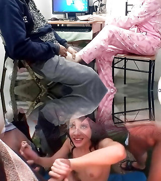 Cuckold hubby found his pregnant cheating wife after no-love glove gang-bang covered in spunk and dirty body writings!