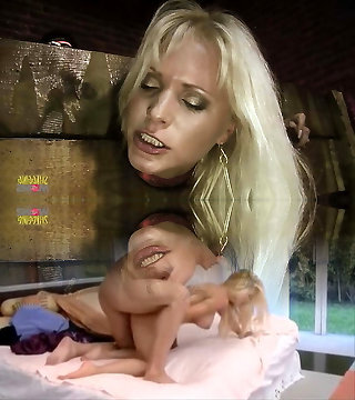 Pretty teenager platinum-blonde slave Dolly Mattel tied up and spanked in a dungeon