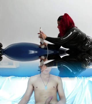 Domina wearing Latex torturing trapped Slave in Rubber Vacuum Bed VacBed