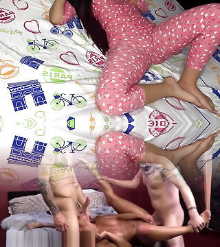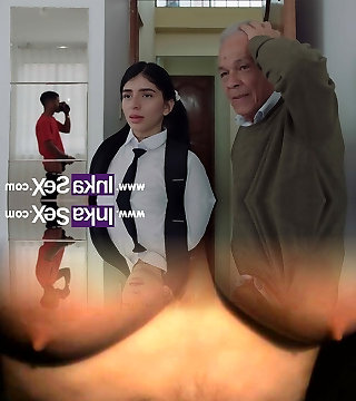 Young schoolgirl and stepfather discover her cousin draining with her thong and gets anal invasion pounding