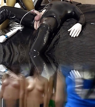 Extremely roped up. He can barely stir as I edge him to orgasm, smack his testicles and tickle him.