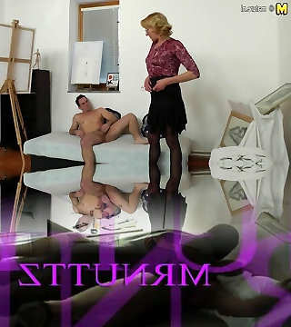 Old granny paintress gets fucked by her young model