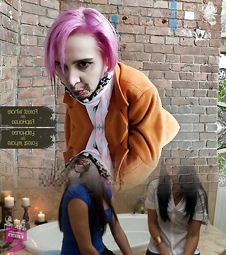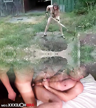 Subjugated naked guy's ass is a target to some horny sex games by bitches